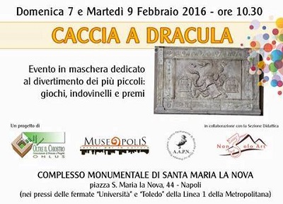 In occasione del Carnevale NonsoloArt propone per domenica 7 febbraio 2016 ore 10.30 “Caccia a Dracula” un evento in maschera a tema dedicato al divertimento dei più piccoli nel Complesso di Santa Maria la Nova, dove si suppone si trovi la Tomba del Conte Dracula.