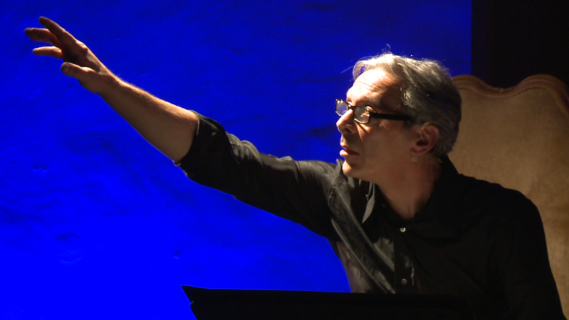 L’intento della narrazione drammaturgica è quello di raccontare la grande leggenda artistica e biografica del genio mettendola a confronto con alcune verità storiche emerse dopo quattro secoli di indagini critiche che hanno frugato in ogni dettaglio della sua vita. Mettere dunque a confronto le prime biografie del Condivi e del Vasari, pilotate dallo stesso Michelangelo, con le ultime acquisizioni della critica scientifica. Per provare così a smontare un po’ la costruzione autocelebrativa del genio e svelare anche le tante menzogne del divino Michelangelo, anche lui, come tutti gli immortali, gran mentitore; e dunque sempre più umanissimo, nostro contemporaneo. Insomma togliere le incrostazione del tempo, far scendere Michelangelo dal piedistallo per raccontare anche le ombre, le piccolezze, le meschinità, e poi rimetterlo subito lassù, sulle impalcature della gloria eterna. E naturalmente viaggiare in leggerezza dentro l’aneddotica e le imprese artistiche, e i tratti della sua personalità, come la compulsiva avidità o la feroce avarizia, o la durezza di una solitudine a lungo difesa. E le ossessioni artistiche e gl’inquieti desideri, e gli amori e la misoginia, e gli uomini straordinari che hanno attraversato la sua vita, dai potentissimi papi ai misconosciuti aiutanti a libro paga. Dare insomma al racconto di una vita un profilo in ombra, per meglio provare a leggere dentro un’anima, che del resto vive beatamente eterna nella sua opera. Ed è proprio qui nella sua opera (che a tratti vorremmo raccontare nelle sue potenti meraviglie e in quei dettagli meno logorati dallo sguardo) che sta la possibilità di proiettare le scene della sua vita, provando a muoversi teatralmente dentro la fisicità sovrumana di quegli ultimi giorni dell’umanità che s’innalzano altissimi lassù sulle volte di una cappella che pare l’arca luminosa in cui si custodisce il mistero insondabile della creazione artistica. Ma poi il racconto teatrale sarà appassionato, popolare, divertito, per comporre il ritratto di un artista che mantiene intatto il potere di emozionare tutti.