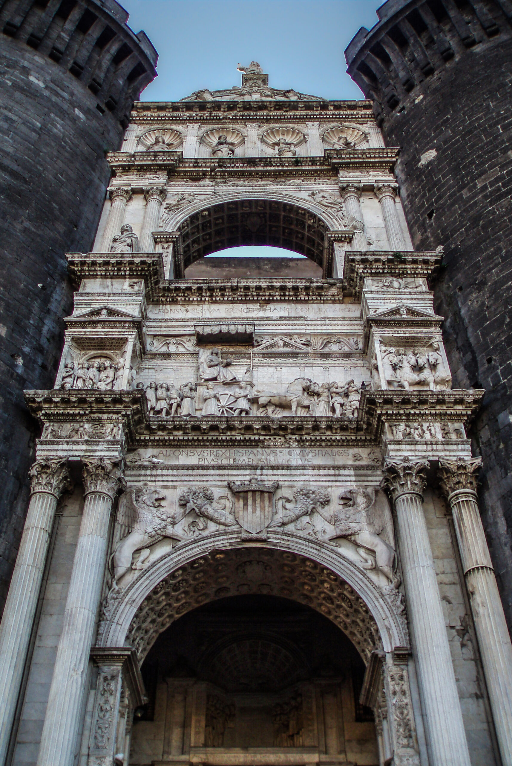 Pare che alcune vicissitudini partenopee abbiano incrociato la storia del Graal con la figura di Alfonso d’Aragona proprio a partire dalla sua dominazione nel Regno di Napoli. Precisamente, dopo la conquista della città da parte de “il Magnanimo”, che nel 1442 cacciò i precedenti dominatori francesi. La storia di quel giorno si può leggere già dall’Arco trionfale marmoreo che fu eretto, in più fasi dal 1452, per volere di Alfonso con l’intento di celebrare la conquista di Napoli e iniziare l’opera di rinnovazione architettonica dell’antica fortezza angioina. La ricerca del Sacro Graal in questo luogo di Napoli parte da una serie di scoperte realizzate e dall’osservazione della giara in pietra, scolpita alla base del balcone esagonale dal quale si affacciava unicamente re Alfonso d’Aragona. A nessun’altro era concesso. E si trova proprio all’interno del Maschio Angioino, nel cortile, accanto a quella sala dei Baroni in cui suo figlio Ferrante avrebbe fatto fuori diversi nobili del regno a lui avversi, verso la fine del Quattrocento. Simbolismo e storia riportano a quella giara in pietra, che secondo alcuni studiosi, potrebbe ricondurre proprio al Graal.