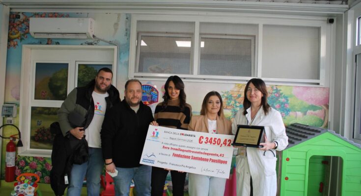 I volontari dell’associazione di promozione sociale Oltre l’Orizzonte, venerdì 2 gennaio 2026, hanno donato alla Fondazione Santobono Pausilipon un assegno della cifra di 3450,42 euro, destinato al supporto del reparto di neurochirurgia pediatrica insieme ad una targa in memoria di Francesco Pio Angelico. Il bambino, che oggi non c’è più a causa di un tumore cerebrale raro e aggressivo, era stato curato dal reparto di Neurochirurgia Pediatrica proprio dell’Ospedale Santobono-Pausilipon.