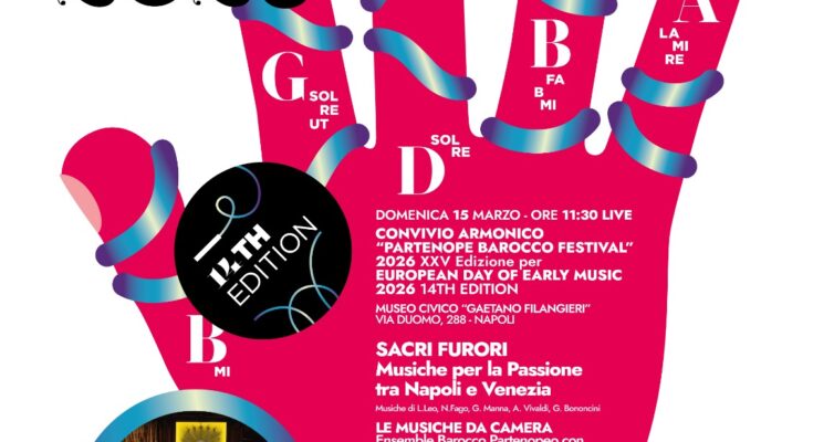 Nell’ambito di Convivio Armonico – Partenope Barocco Festival, rassegna promossa da AREA ARTE e giunta alla 25esima edizione che inizierà il prossimo 3 maggio, domenica 15 Marzo alle ore 11.30, la Sala Agata del Museo Civico Gaetano Filangieri in Via Duomo a Napoli ospita, in sinergia con la direzione del Museo, il concerto “SACRI FURORI Musiche per la Passione tra Napoli e Venezia” con l’Ensemble Barocco Partenopeo LE MUSICHE DA CAMERA, ensemble in residence di Area Arte con strumenti d’epoca, concertato da Egidio Mastrominico (violino di concerto) con il soprano Francesco Divito, il mezzosoprano Rosa Montano, Vezio Iorio alla viola, Giuseppe Grieco al violino barocco, Renata Cataldi al flauto traversiere, Leonardo Massa al violoncello barocco, Cristiano Pennone al violone, Paola Ventrella alla tiorba e Debora Capitanio al clavicembalo. L’evento è realizzato con il contributo della Regione Campania.