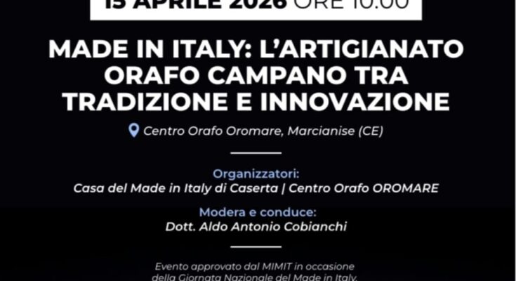 Il centro orafo Oromare – Casa del Made in Italy di Caserta il 15 aprile 2026 celebra la Giornata nazionale del Made in Italy con un meeting dal titolo “Made in Italy: l’artigianato orafo campano tra tradizione e innovazione”. Con l’inizio dei lavori fissato alle ore 10.30 a Marcianise il 15 aprile si incontrano scuole, università, musei, enti datoriali e associazioni per un confronto sui temi riguardanti tutto il comparto. La Giornata nazionale del Made in Italy è istituita dal Ministero delle Imprese e del Made in Italy per celebrare la nascita di Leonardo Da Vinci avvenuta il 15 aprile 1452.