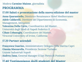 La quarta edizione del Master Universitario di I livello in Hospitality and Destination Management della Università degli Studi di Napoli Federico II sarà presentata Martedì 11 Novembre (ore 17) presso il Renaissance Naples Hotel Mediterraneo. L’evento, …
